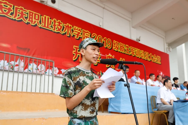 9月12日上午,安慶職業(yè)技術(shù)學(xué)院2019級(jí)新生軍訓(xùn)動(dòng)員大會(huì)暨開學(xué)典禮在學(xué)院田徑場(chǎng)隆重舉行。黨委書記王進(jìn)出席典禮并為軍訓(xùn)團(tuán)授旗,院長(zhǎng)畢明生、迎江區(qū)人武部政委潘發(fā)良、院紀(jì)委書記方天祜、院黨委委員、組織統(tǒng)戰(zhàn)部長(zhǎng)程飛出席典禮,副院長(zhǎng)譚維奇主持。各系部、處室、中心主要負(fù)責(zé)同志,各系學(xué)管工作人員、新生輔導(dǎo)員、2019級(jí)全體新生、軍訓(xùn)教官參加典禮。