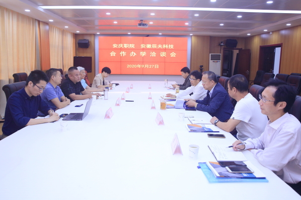9月27日下午,安徽辰夫科技有限公司董事長孫彪一行到安慶職業(yè)技術(shù)學(xué)院洽商合作辦學(xué)事宜。安慶職院院長畢明生、副院長譚維奇,在綜合辦公樓第二會議室熱情招待了孫彪一行。
