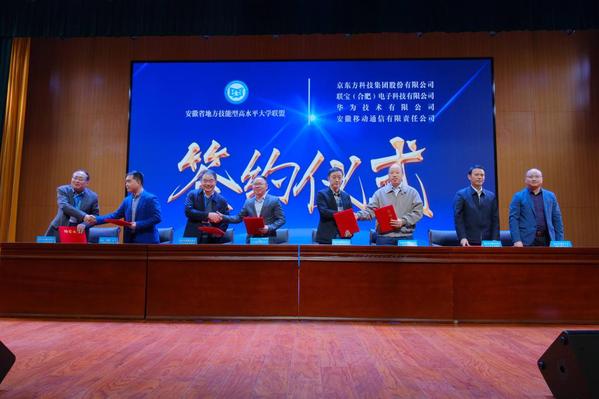 會(huì)議通過《安徽省地方技能型高水平大學(xué)聯(lián)盟章程》與《安徽省高等職業(yè)教育高質(zhì)量發(fā)展宣言》;京東方、聯(lián)寶電子、華為、安徽移動(dòng)與聯(lián)盟簽訂合作框架協(xié)議;舉行安徽省高職院?!半p基建設(shè)”公共信息平臺(tái)發(fā)布會(huì)。