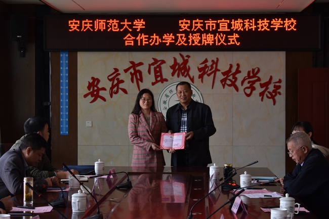 授牌儀式上,余振華對安慶師范大學長期以來對安慶市宜城科技學校的支持表示衷心感謝,并介紹了學校的建校歷史、辦學理念及辦學成果,表示不遺余力地為安慶師范大學實習生提供實習、就業(yè)的良好環(huán)境、為貴校輸送優(yōu)質(zhì)的畢業(yè)生生源,希望兩校之間加強交流與合作,共享教育資源長久合作、規(guī)范合作,為安慶的經(jīng)濟和社會發(fā)展作出積極貢獻。