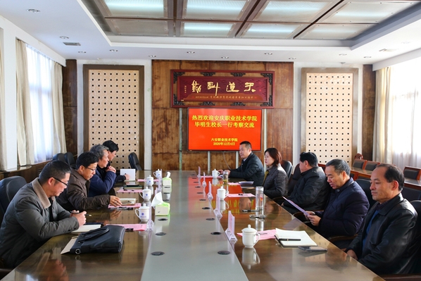 在六安職業(yè)技術(shù)學(xué)院,校黨委書(shū)記周德福、副校長(zhǎng)孫勇及相關(guān)職能部門(mén)、汽車(chē)與機(jī)電工程學(xué)院負(fù)責(zé)人等參加了座談、交流。