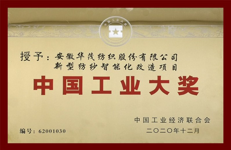 12月27日上午,從北京召開的第六屆中國工業(yè)大獎發(fā)布會上傳來喜訊,由安徽華茂申報的新型紡紗智能化改造項目榮獲“中國工業(yè)大獎”。中國工業(yè)大獎是我國工業(yè)領(lǐng)域最高獎項,獎項的獲得是對安徽華茂在以制造強國為己任、以產(chǎn)業(yè)報國為初心,堅持自立自強,走中國特色創(chuàng)新發(fā)展、綠色發(fā)展新型工業(yè)化道路等方面做出突出成績的充分肯定。