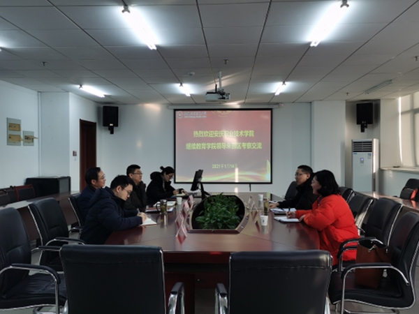 1月14日下午,安慶職業(yè)技術學院校企合作辦主任楊元綱、繼續(xù)教育學院院長姚詠赴安徽廣播電視大學繼續(xù)教育學院考察交流。安徽廣播電視大學繼續(xù)教育學院院長李翔出席交流會。