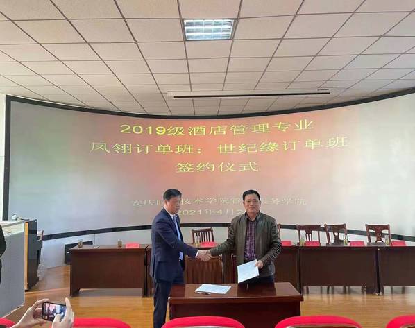 最后,校方代表?xiàng)詈袼煞謩e與安慶碧桂園鳳凰大酒店、安慶世紀(jì)緣國際大酒店負(fù)責(zé)人進(jìn)行了現(xiàn)場簽約。本次訂單班的成功簽約,為酒店管理專業(yè)下一步開展更多的校企聯(lián)合育人奠定了基礎(chǔ)。(文:李敏 圖:李光壽等 審核:楊厚松)