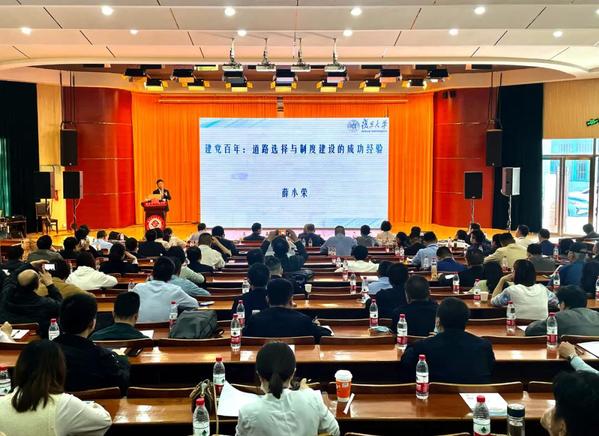 薛小榮以《建黨百年:道路選擇與制度建設(shè)的成功經(jīng)驗(yàn)》為題,結(jié)合大量歷史事件,用生動(dòng)通俗易懂的語言精辟透徹的講解了,新中國從“站起來”、“富起來”、“強(qiáng)起來”三個(gè)時(shí)代制度的選擇。生動(dòng)闡述中國共產(chǎn)黨從國情出發(fā),三次歷史性的制度調(diào)整與功能優(yōu)化,既簡(jiǎn)要概括了中國近代以來飛躍的歷史進(jìn)程,又深刻揭示了中國特色社會(huì)主義不斷開辟發(fā)展新境界的歷史意義。報(bào)告深入淺出,內(nèi)容豐富,進(jìn)一步增強(qiáng)了參會(huì)人員對(duì)中國共產(chǎn)黨人初心和使命的情感認(rèn)同、理性認(rèn)同、實(shí)踐認(rèn)同,對(duì)黨的奮斗歷程和制度建設(shè)有了更加清晰的認(rèn)識(shí),在重溫黨的歷史過程中得到了新的教育和啟迪。(文:胡強(qiáng)圣 審稿:姚詠)