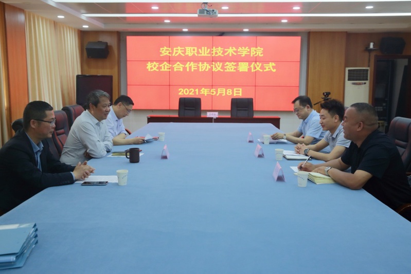 5月8日上午,安慶職業(yè)技術(shù)學(xué)院與安徽中科英才科技發(fā)展有限責(zé)任公司、天津?yàn)I海迅騰科技集團(tuán)有限公司、安徽辰夫科技有限公司簽署了校企合作協(xié)議。安慶職院副校長李克讓主持儀式并代表學(xué)校與三家企業(yè)簽署協(xié)議。學(xué)院校企合作辦、招就處相關(guān)負(fù)責(zé)同志參加儀式。