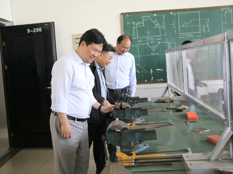 趙偉一行實地察看校容校貌并深入教學(xué)實訓(xùn)基地,了解學(xué)校辦學(xué)規(guī)模、基礎(chǔ)設(shè)施、專業(yè)設(shè)置、實習(xí)實訓(xùn)、招生就業(yè)、教師隊伍建設(shè)、技能人才培養(yǎng)等情況。