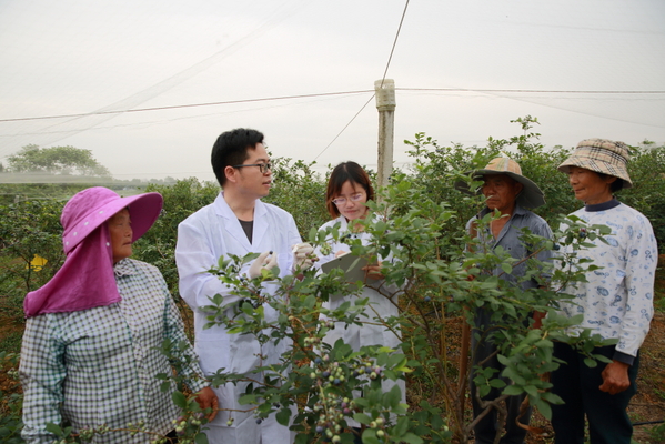 安慶職院教師劉冬、李萍兩位博士致力于農(nóng)產(chǎn)品精深加工技術(shù)、植物病蟲害等方面的研究,兩人領(lǐng)銜的農(nóng)林與服裝學院專業(yè)教師團隊活躍在山坡田間和農(nóng)企車間,從土壤改良、病蟲草害綠色防控到藍莓系列產(chǎn)品精深加工等方面,為懷寧縣黃墩鎮(zhèn)藍莓企業(yè)提供技術(shù)服務(wù)。