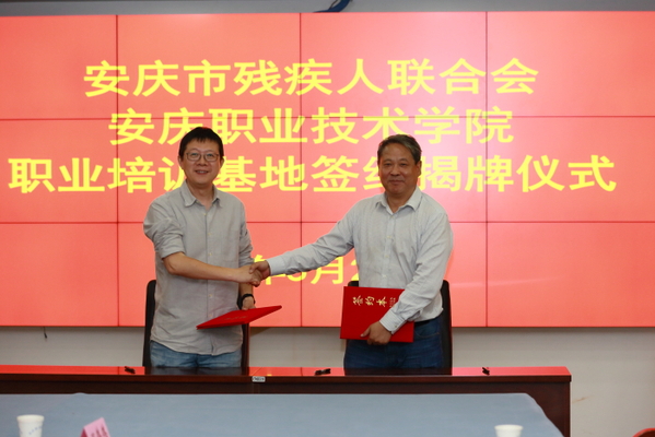 5月26日下午,安慶市殘疾人聯(lián)合會與安慶職業(yè)技術(shù)學(xué)院共建的安慶市殘疾人職業(yè)培訓(xùn)基地簽約揭牌儀式在安慶職院舉行。