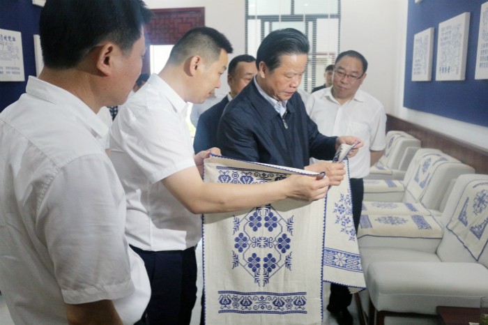 望江挑花至今已有1000多年歷史,2008年入選為國家非物質(zhì)文化遺產(chǎn)名錄。多年來,安慶皖江中等專業(yè)學校在望江挑花的保護、傳承、研發(fā)方面做了大量工作。張昌爾一行實地參觀了望江挑花保護與傳承基地,聽取該校董事長吳燦及非遺傳承人介紹挑花工藝、制作流程,詳細了解挑花產(chǎn)業(yè)發(fā)展情況。張昌爾指出,望江挑花作為國家非物質(zhì)文化遺產(chǎn),做工精細、產(chǎn)品精美,是望江重要的文化資源。要積極做好傳承工作,充分挖掘文化內(nèi)涵,不斷創(chuàng)新載體,加強人才培養(yǎng),讓挑花工藝發(fā)揚光大,助力鄉(xiāng)村振興。要利用國家非物質(zhì)文化遺產(chǎn)這一品牌,積極搭建平臺,開展招商引資、招賢引智,賦能挑花產(chǎn)業(yè)高質(zhì)量發(fā)展。