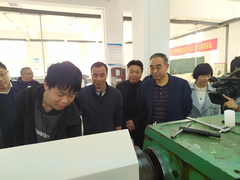 郭玉晟一行實(shí)地察看校園環(huán)境,邊走邊聽取了學(xué)校負(fù)責(zé)人有關(guān)工作匯報(bào),了解了醫(yī)藥健康實(shí)訓(xùn)基地項(xiàng)目規(guī)劃建設(shè)有關(guān)情況,并深入教學(xué)實(shí)訓(xùn)基地,詳細(xì)了解學(xué)校辦學(xué)規(guī)模、基礎(chǔ)設(shè)施、專業(yè)設(shè)置、實(shí)習(xí)實(shí)訓(xùn)、招生就業(yè)、疫情防控等情況。