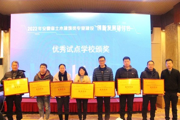 會議表彰了BIM證書試點優(yōu)秀學(xué)校,并頒發(fā)了獎牌。安慶職院獲2021年度安徽省BIM證書試點優(yōu)秀學(xué)校。