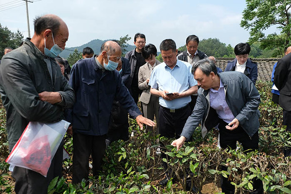 緊接著,童宏葵來到網(wǎng)絡(luò)直播室,看望正在這里指導(dǎo)直播帶貨的教師徐奕勝和王瑞陽、孫澤芳主播。在離村部不遠(yuǎn)的一片茶葉園里,幾十名茶農(nóng)正在聽章杰義老師講授茶葉種植技術(shù),童宏葵走進(jìn)田間課堂,仔細(xì)察看上課效果,親切地詢問大家是否聽得懂老師講課。并抽空和茶農(nóng)交流茶樹常規(guī)繁育和茶樹修剪技術(shù)、病蟲害預(yù)防、土壤管理、施肥技術(shù)、茶樹采摘注意事項等,贏得茶農(nóng)們陣陣掌聲。在生豬養(yǎng)殖大戶段迎春養(yǎng)殖場,十幾位養(yǎng)豬戶正在聽畜牧局專家董尚青講課,童宏葵詳細(xì)詢問了段迎春家飼養(yǎng)的生豬品種、銷售渠道和常見病的預(yù)防及處理情況,并讓他經(jīng)常和學(xué)校保持聯(lián)系,及時得到學(xué)校在技術(shù)方面的幫助。