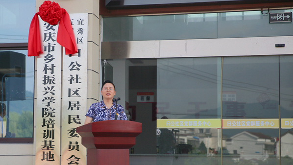 6月9日上午,安慶市鄉(xiāng)村振興學(xué)院培訓(xùn)基地在五橫鄉(xiāng)曰公社區(qū)掛牌,同時宜秀區(qū)高素質(zhì)農(nóng)民培訓(xùn)班開班。安慶職業(yè)技術(shù)學(xué)院黨委書記童宏葵、副書記李克讓、駐五橫鄉(xiāng)曰公社區(qū)鄉(xiāng)村振興指導(dǎo)員王進(jìn),市農(nóng)業(yè)農(nóng)村局黨組成員市委農(nóng)辦專職副主任戴向前、市鄉(xiāng)村振興局副局長王輝,宜秀區(qū)人大常委會主任曹紅斌、宜秀區(qū)區(qū)委常委、組織部長、統(tǒng)戰(zhàn)部長劉曉麗,副區(qū)長張泓等出席儀式并揭牌。