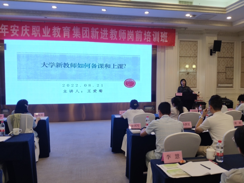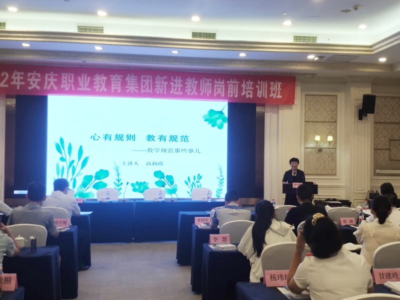 8月20日至8月21日,安慶職業(yè)教育集團(tuán)2022年新進(jìn)教師崗前培訓(xùn)班在安慶碧桂園鳳凰酒店舉行。安慶職業(yè)教育集團(tuán)理事長、安慶職業(yè)技術(shù)學(xué)院黨委副書記、校長畢明生出席開班儀式并作首場專題講座。安慶職業(yè)教育集團(tuán)秘書長、安慶職業(yè)技術(shù)學(xué)院黨委副書記、安慶技師學(xué)院院長李克讓主持開班儀式。安慶職業(yè)技術(shù)學(xué)院黨委委員、組織部部長、組織人事處處長高潤霞,安慶職業(yè)技術(shù)學(xué)院黨委委員、統(tǒng)戰(zhàn)部部長李五一出席并作專題講座。本次集團(tuán)內(nèi)部培訓(xùn)特別邀請了安慶師范大學(xué)宋志英教授、王愛菊教授為新進(jìn)教師作專題講座。安慶職業(yè)教育集團(tuán)2022年新入職的40名教師參加了本次崗前培訓(xùn)。