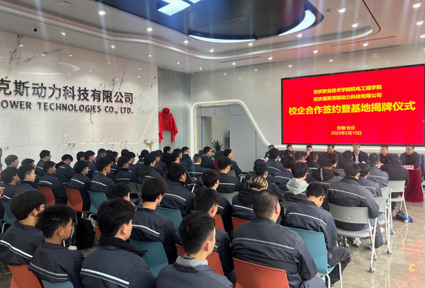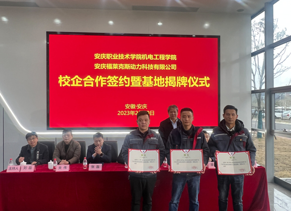 2月10日上午,集團(tuán)秘書(shū)長(zhǎng)、安慶職業(yè)技術(shù)學(xué)院黨委副書(shū)記李克讓,安慶經(jīng)開(kāi)區(qū)黨工委委員、紀(jì)監(jiān)委書(shū)記嚴(yán)衛(wèi)江齊聚安慶福萊克斯動(dòng)力科技有限公司,出席安慶職院與安慶福萊克斯公司戰(zhàn)略合作簽約儀式并講話,共同為“安慶職教集團(tuán)汽車產(chǎn)業(yè)學(xué)院福萊克斯教學(xué)基地”揭牌。安慶職院相關(guān)職能部門、機(jī)電工程學(xué)院相關(guān)負(fù)責(zé)人,經(jīng)開(kāi)區(qū)人社局相關(guān)負(fù)責(zé)同志,福萊克斯相關(guān)負(fù)責(zé)人以及首屆“福萊克斯班”學(xué)員共同見(jiàn)證了這一歷史性時(shí)刻。