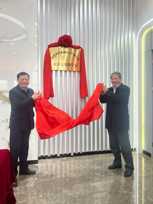 2月10日上午,集團秘書長、安慶職業(yè)技術(shù)學院黨委副書記李克讓,安慶經(jīng)開區(qū)黨工委委員、紀監(jiān)委書記嚴衛(wèi)江齊聚安慶福萊克斯動力科技有限公司,出席安慶職院與安慶福萊克斯公司戰(zhàn)略合作簽約儀式并講話,共同為“安慶職教集團汽車產(chǎn)業(yè)學院福萊克斯教學基地”揭牌。安慶職院相關(guān)職能部門、機電工程學院相關(guān)負責人,經(jīng)開區(qū)人社局相關(guān)負責同志,福萊克斯相關(guān)負責人以及首屆“福萊克斯班”學員共同見證了這一歷史性時刻。