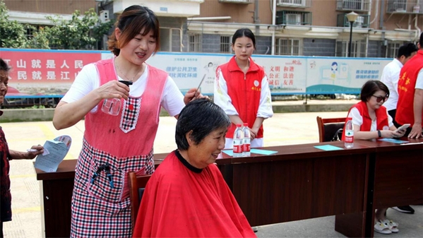 活動開設(shè)了義診、義剪、磨剪戧刀、愛心縫紉、配鑰匙等多項(xiàng)服務(wù)?;顒蝇F(xiàn)場熱鬧非凡,“趕大集”的市民絡(luò)繹不絕。義診點(diǎn)位,醫(yī)務(wù)志愿者耐心地為群眾測量血壓,為前來看診的群眾提供準(zhǔn)確的診斷和暖心的叮囑;義剪攤前,三名理發(fā)師熱情地招呼每位前來剪發(fā)的老人,用嫻熟的理發(fā)技術(shù)為老人修剪出合適的發(fā)型;在磨剪戧刀、愛心縫紉、配鑰匙的點(diǎn)位,志愿工作者們熱情招待著每一位市民群眾,為他們送去貼心的服務(wù)。學(xué)院志愿者積極維護(hù)現(xiàn)場秩序,確保志愿服務(wù)工作順利開展。