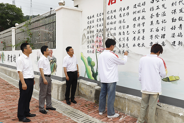 畢明生一行沿著修整一新的鄉(xiāng)間小路,看著周邊白凈的墻面上一幅幅生動(dòng)的手繪畫(huà)面,聽(tīng)著參與繪畫(huà)的師生的細(xì)致介紹,不時(shí)獲得沿途村民滿(mǎn)意的贊賞,對(duì)付出辛勤勞動(dòng)的師生和創(chuàng)作成果給予了充分肯定。