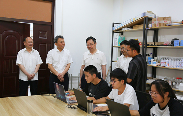 胡紅兵詳細了解志愿服務團隊活動開展情況,認真聽取了該校信息技術學院第一黨支部近期工作以及省級技能大師工作室工作開展等情況匯報,并親切慰問了教師代表,對他們的辛勤付出表示感謝。
