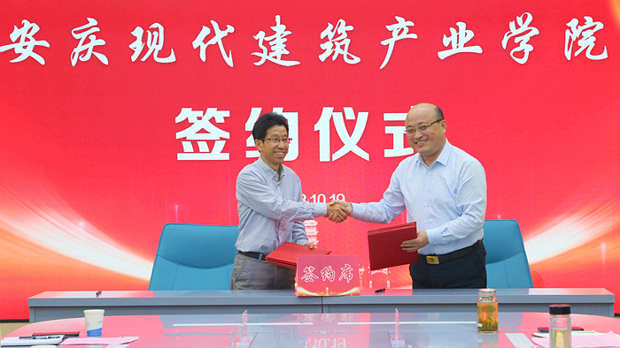 隨后,畢明生和謝長(zhǎng)兵分別代表校、政雙方共同簽署了《共建安慶現(xiàn)代建筑產(chǎn)業(yè)學(xué)院框架協(xié)議》。