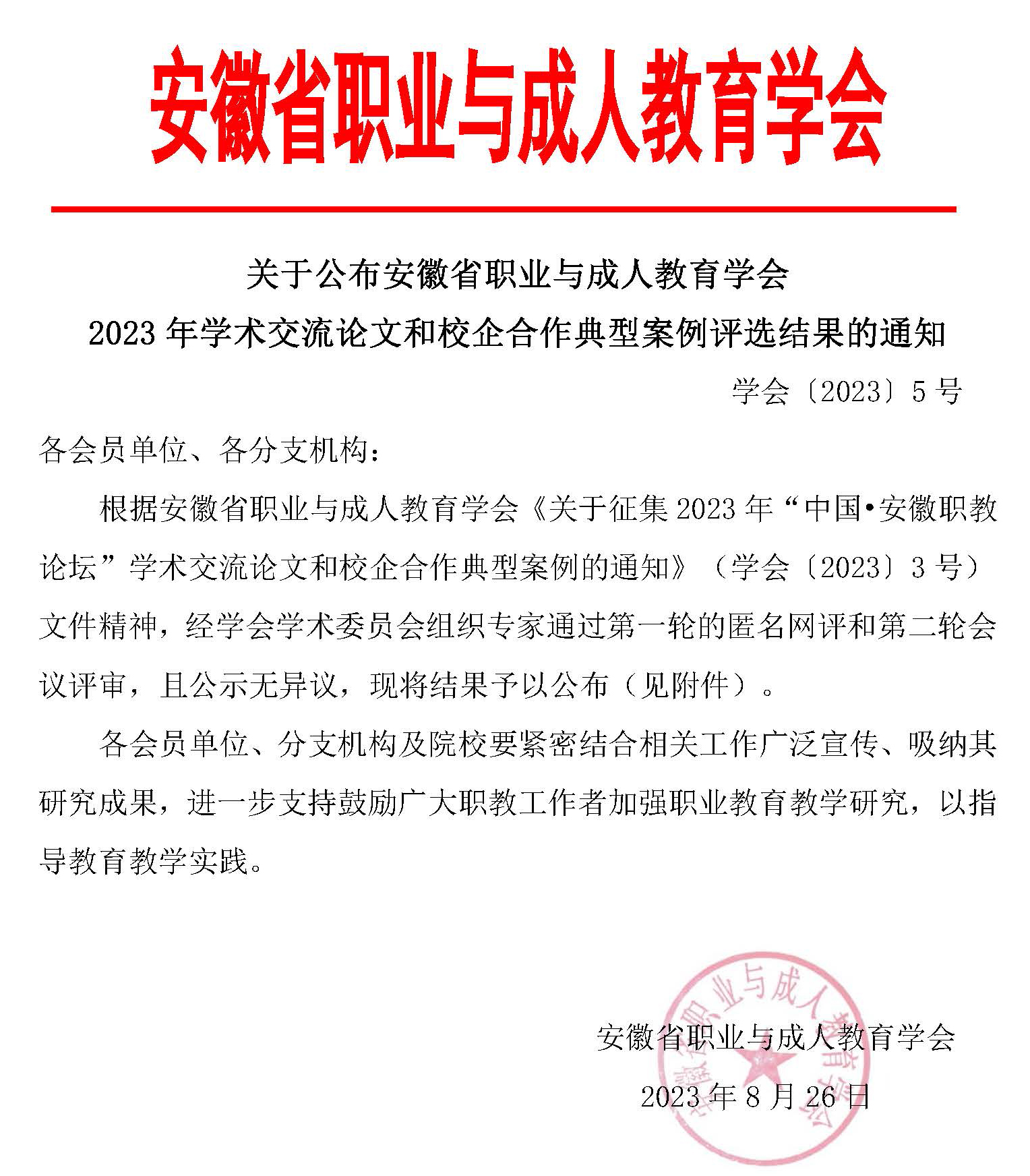 集團(tuán)9所院校在2023年“中國(guó)?安徽職教論壇”論文與典型案例評(píng)比中獲獎(jiǎng)