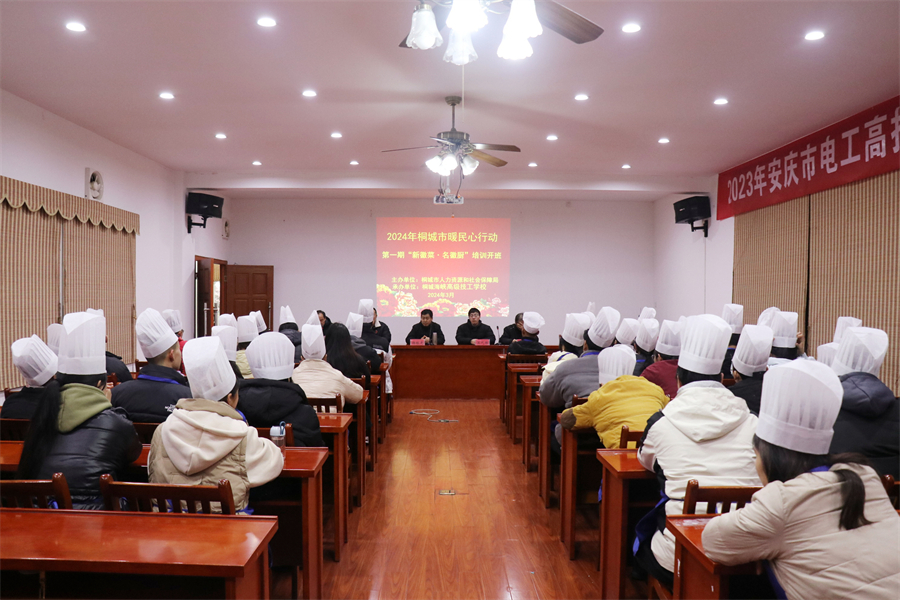 3月5日上午,2024年“新徽菜·名徽廚”暖民心行動培訓(xùn)首期開班式在桐城高級技工學(xué)校舉行開班式。桐城市職業(yè)技能鑒定中心、市商務(wù)局、市就業(yè)人才服務(wù)中心、桐城高級技工學(xué)校等相關(guān)部門負責(zé)人出席。桐城水碗烹飪技藝非遺傳承人蔡冬云參加開班式并開講第一課。