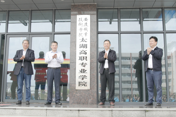 4月23日上午,安慶職業(yè)技術(shù)學(xué)院太湖高職專業(yè)學(xué)院簽約暨揭牌儀式在太湖職業(yè)技術(shù)學(xué)校隆重舉行。安慶職院黨委書記童宏葵、太湖縣委書記朱小兵出席簽約儀式并為太湖高職專業(yè)學(xué)院揭牌。安慶職業(yè)技術(shù)學(xué)院太湖高職專業(yè)學(xué)院的成立標(biāo)志著該校在“立足地方服務(wù)地方”的辦學(xué)方向、優(yōu)化安慶高等職業(yè)教育布局、為全市經(jīng)濟社會高質(zhì)量發(fā)展提供人才支撐的道路上,又邁出了堅實的一步。