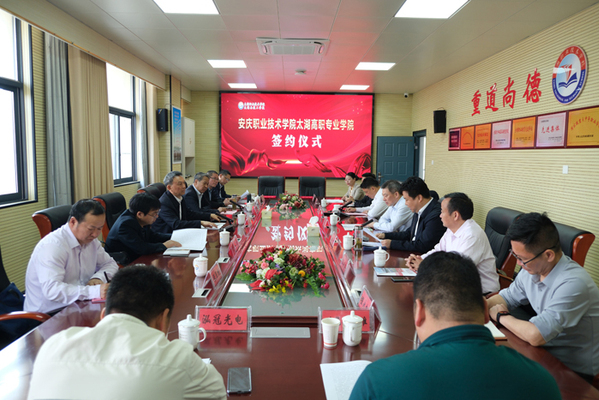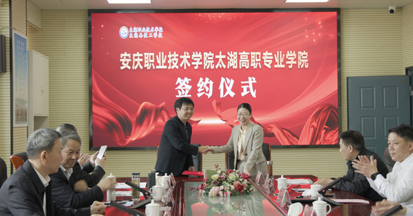 4月23日上午,安慶職業(yè)技術(shù)學(xué)院太湖高職專業(yè)學(xué)院簽約暨揭牌儀式在太湖職業(yè)技術(shù)學(xué)校隆重舉行。安慶職院黨委書(shū)記童宏葵、太湖縣委書(shū)記朱小兵出席簽約儀式并為太湖高職專業(yè)學(xué)院揭牌。安慶職業(yè)技術(shù)學(xué)院太湖高職專業(yè)學(xué)院的成立標(biāo)志著該校在“立足地方服務(wù)地方”的辦學(xué)方向、優(yōu)化安慶高等職業(yè)教育布局、為全市經(jīng)濟(jì)社會(huì)高質(zhì)量發(fā)展提供人才支撐的道路上,又邁出了堅(jiān)實(shí)的一步。