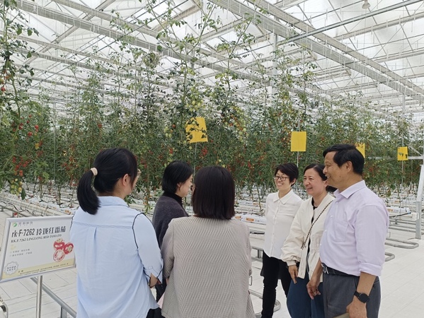 儀式結(jié)束后,潤(rùn)科董事長(zhǎng)助理帶領(lǐng)雙方參觀了公司的智能溫室大棚,企業(yè)方代表詳細(xì)闡述了當(dāng)前智慧農(nóng)業(yè)的發(fā)展趨勢(shì)和前景。李院長(zhǎng)簡(jiǎn)要介紹了農(nóng)林與服裝學(xué)院的基本情況,并就安徽省雙高專業(yè)建設(shè)、產(chǎn)學(xué)研合作和學(xué)生就業(yè)等工作與潤(rùn)科做了深入交流,并希望與潤(rùn)科開展深入合作。校企雙方經(jīng)交流探討,初步達(dá)成了今后在產(chǎn)學(xué)研、人才培養(yǎng)和學(xué)生就業(yè)創(chuàng)業(yè)等方面的合作意愿。(文:許慧慧 圖:徐基艷 審稿:劉 冬)