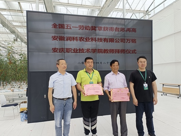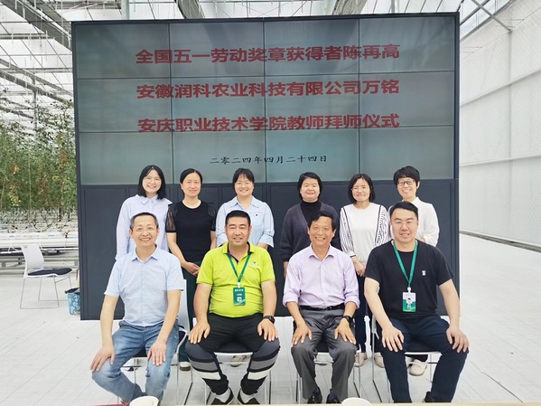 為深入推進(jìn)教師隊(duì)伍建設(shè)工作,創(chuàng)新“師帶徒”方式,安慶職業(yè)技術(shù)學(xué)院農(nóng)林與服裝學(xué)院組織開展“名師導(dǎo)師帶徒”工作。4月24日,農(nóng)林與服裝學(xué)院黨總支書、院長(zhǎng)李進(jìn)恩帶領(lǐng)植物保護(hù)與檢疫和園藝技術(shù)專業(yè)團(tuán)隊(duì)教師在安徽潤(rùn)科農(nóng)業(yè)科技有限公司向全國(guó)五一勞動(dòng)獎(jiǎng)?wù)芦@得者陳再高和安徽潤(rùn)科農(nóng)業(yè)科技有限公司副總經(jīng)理萬(wàn)銘拜師。
