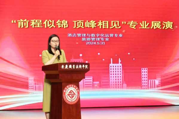 為提升和檢驗(yàn)專業(yè)技能學(xué)習(xí)成效,促進(jìn)課程思政第一課堂與第二課堂同向同行,推動(dòng)畢業(yè)生本地就業(yè),5月31日下午,安慶職業(yè)技術(shù)學(xué)院管理服務(wù)學(xué)院酒店數(shù)字化運(yùn)營(yíng)、旅游管理專業(yè)聯(lián)合在幼兒三期實(shí)訓(xùn)室舉行“前程似錦·頂峰相見”校企共聯(lián)專業(yè)展演活動(dòng)。活動(dòng)邀請(qǐng)了安慶會(huì)展中心會(huì)議中心酒店、合肥豐大國(guó)際酒店、安慶豐大酒店、安慶香瀾豪庭酒店、安慶碧桂園鳳凰酒店、安慶世紀(jì)緣酒店、中國(guó)移動(dòng)安慶分公司等文旅相關(guān)企業(yè)出席。學(xué)校教務(wù)處、校團(tuán)委等負(fù)責(zé)同志、管理服務(wù)學(xué)院班子及師生代表參加了此次展演活動(dòng)。