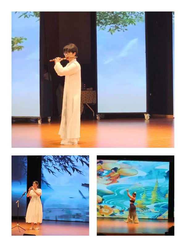此次展演活動(dòng)包含酒店、旅游專業(yè)技能展演和冷餐會(huì)兩個(gè)部分。酒店專業(yè)技能展演有酒店工服秀、職業(yè)禮儀操、托盤舞、調(diào)酒、插花、茶藝等相關(guān)技能展示。旅游專業(yè)技能展演有拉丁舞、藏族舞、竹笛、傣族舞、葫蘆絲等才藝展示。冷餐會(huì)內(nèi)容涵蓋了嘉賓迎送、嘉賓餐中服務(wù)、果盤制作、伴手禮制作、會(huì)場(chǎng)布置等相關(guān)技能展示,旨在通過讓同學(xué)們“沉浸式”現(xiàn)場(chǎng)操作,將《宴會(huì)餐飲》《酒店客房服務(wù)》《酒店禮儀》《酒店技能實(shí)訓(xùn)》等相關(guān)理實(shí)課程、旅游技能大賽備賽等學(xué)習(xí)成果進(jìn)行集中展示和運(yùn)用,促進(jìn)一二課堂同向同行。
