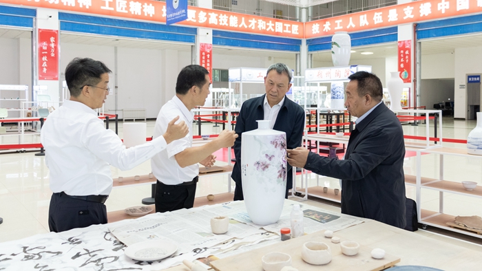 會(huì)后,童宏葵一行先后參觀了朔州陶瓷職業(yè)技術(shù)學(xué)院實(shí)訓(xùn)中心、工匠學(xué)院、大師工作室、紫砂展覽館、陶瓷教學(xué)生產(chǎn)線、師生精品作品展廳、全國大賽作品展廳等地,詳細(xì)了解該校辦學(xué)特色、辦學(xué)條件和辦學(xué)成果等。(文、圖:余成龍 審稿:姚詠)