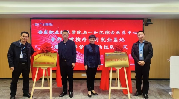 為響應(yīng)國(guó)家實(shí)施積極應(yīng)對(duì)人口老齡化戰(zhàn)略,強(qiáng)化職業(yè)教育與產(chǎn)業(yè)企業(yè)需求相對(duì)接,積極助力推進(jìn)老齡事業(yè)、老齡產(chǎn)業(yè)和養(yǎng)老專(zhuān)業(yè)協(xié)同發(fā)展,10月24日上午,安慶職業(yè)技術(shù)學(xué)院管理服務(wù)學(xué)院和老年大學(xué)與安慶一加億綜合醫(yī)養(yǎng)中心,舉行合作共建“安慶職業(yè)技術(shù)學(xué)院管理服務(wù)學(xué)院一加億校外實(shí)習(xí)就業(yè)基地”和“安慶職業(yè)技術(shù)學(xué)院老年大學(xué)一加億分?!焙灱s活動(dòng)。安慶職院黨委委員、組織部部長(zhǎng)高潤(rùn)霞、安慶市民政局四級(jí)調(diào)研員周志遠(yuǎn)、安慶一加億醫(yī)養(yǎng)服務(wù)有限公司法人代表劉林志出席活動(dòng),管理服務(wù)學(xué)院、繼續(xù)教育學(xué)院相關(guān)負(fù)責(zé)同志及師生代表參加了簽約儀式。
