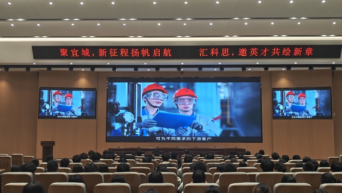 為了讓參觀師生進(jìn)一步了解科思化學(xué),公司人力資源部人員還通過(guò)宣傳視頻向大家展示了公司的企業(yè)文化和業(yè)務(wù)范圍。人力資源部經(jīng)理王翥翔向大家詳盡介紹了科思化學(xué)在團(tuán)隊(duì)建設(shè)、職工人文關(guān)懷以及人才培養(yǎng)、個(gè)人職業(yè)發(fā)展等方面的具體措施,并與同學(xué)們積極互動(dòng)交流,現(xiàn)場(chǎng)氣氛活躍。