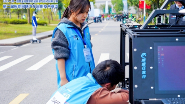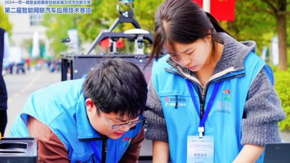 大賽首日,新能源汽車仿真賽項(xiàng)拉開帷幕。參賽選手們需要在限定時(shí)間內(nèi),通過(guò)計(jì)算機(jī)仿真技術(shù)模擬新能源汽車的運(yùn)行狀態(tài),對(duì)車輛性能進(jìn)行仿真分析和優(yōu)化。次日,新能源汽車裝調(diào)賽項(xiàng)火熱進(jìn)行,該賽項(xiàng)要求選手們對(duì)智能網(wǎng)聯(lián)汽車進(jìn)行細(xì)致的裝配、調(diào)試和標(biāo)定,確保車輛各項(xiàng)功能正常運(yùn)行。大賽最后一天,車路協(xié)同賽項(xiàng)成為焦點(diǎn)。該賽項(xiàng)要求選手在規(guī)定時(shí)間內(nèi)完成智能路側(cè)端設(shè)備的安裝、調(diào)試、通信連接、故障排除。張晴晴和彭耀祥展現(xiàn)出卓越的技術(shù)水平和團(tuán)隊(duì)協(xié)作能力,精心裝配,耐心調(diào)試,確保每一環(huán)節(jié)都達(dá)到最佳狀態(tài)。