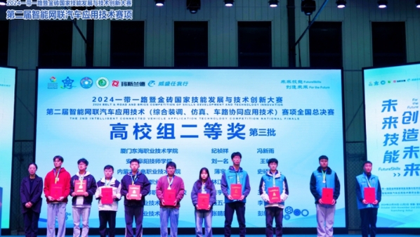 10月31日至11月2日,2024“一帶一路”暨金磚國(guó)家技能發(fā)展與技術(shù)創(chuàng)新大賽之第二屆智能網(wǎng)聯(lián)汽車應(yīng)用技術(shù)(綜合裝調(diào)、仿真、車路協(xié)同應(yīng)用技術(shù))賽項(xiàng)全國(guó)總決賽在宣城職業(yè)技術(shù)學(xué)院舉行。安慶職業(yè)技術(shù)學(xué)院機(jī)電工程學(xué)院舒滿征老師和單家正老師指導(dǎo)的張晴晴和彭耀祥兩位學(xué)生獲得高校組全國(guó)二等獎(jiǎng),教師組鮑成和邱雨兩位老師獲得職工組全國(guó)三等獎(jiǎng),舒滿征和單家正老師獲得優(yōu)秀指導(dǎo)教師稱號(hào)。