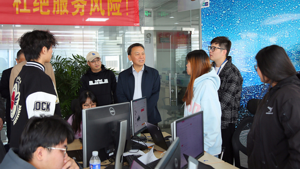 在安徽云霽電子商務(wù)有限公司,童宏葵詳細(xì)了解了企業(yè)經(jīng)營、發(fā)展情況和同學(xué)們實(shí)習(xí)工作情況。公司負(fù)責(zé)人汪義德很滿意地說,企業(yè)員工中,有三分之一來自安職院。同學(xué)們能夠快速適應(yīng)職場環(huán)境,展現(xiàn)出良好的職業(yè)素養(yǎng)和專業(yè)技能。公司與安慶職院已達(dá)成較為深入的合作,目前以訂單班等形式共同制定了人才培養(yǎng)方案和教學(xué)計(jì)劃,打造具有特色的課程體系和實(shí)踐教學(xué)體系,已聯(lián)合培養(yǎng)了三屆電商專業(yè)學(xué)生。童宏葵看到在這里實(shí)習(xí)、就業(yè)的學(xué)生,個(gè)個(gè)精神飽滿,人人干勁十足,非常欣慰,鼓勵(lì)他們再接再厲,任勞任怨,為公司多作貢獻(xiàn),為學(xué)校多爭光。