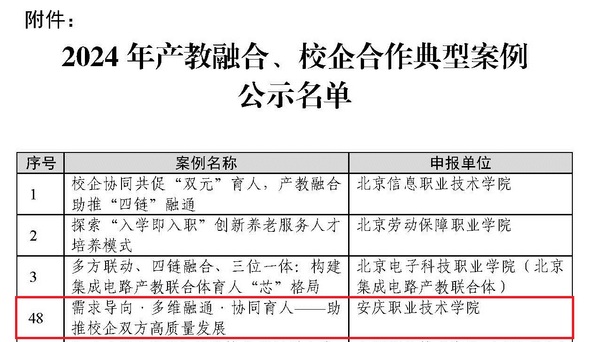 12月10日,教育部發(fā)布公示,安慶職業(yè)技術(shù)學(xué)院建筑工程學(xué)院張賽老師撰寫報(bào)送的《需求導(dǎo)向·多維融通·協(xié)同育人——助推校企雙方高質(zhì)量發(fā)展》產(chǎn)教融合、校企合作案例,成功入選教育部2024年產(chǎn)教融合、校企合作典型案例。本次遴選,在各省級(jí)教育行政部門、各計(jì)劃單列市教育局推薦的基礎(chǔ)上,經(jīng)教育部職成司組織的資格審查、專家評(píng)議等程序,在全國范圍內(nèi)確定了133個(gè)產(chǎn)教融合、校企合作典型案例,安徽省共三項(xiàng)案例入選。