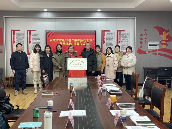 近日,省級非物質文化遺產“徽派插花藝術”傳承基地在安慶職業(yè)技術學院農林與服裝學院揭牌。省級非遺“徽派插花藝術”傳承人付玉蘭教授及團隊成員,該院黨總支書記、院長李進恩,教學工作負責人,老師代表參加儀式。