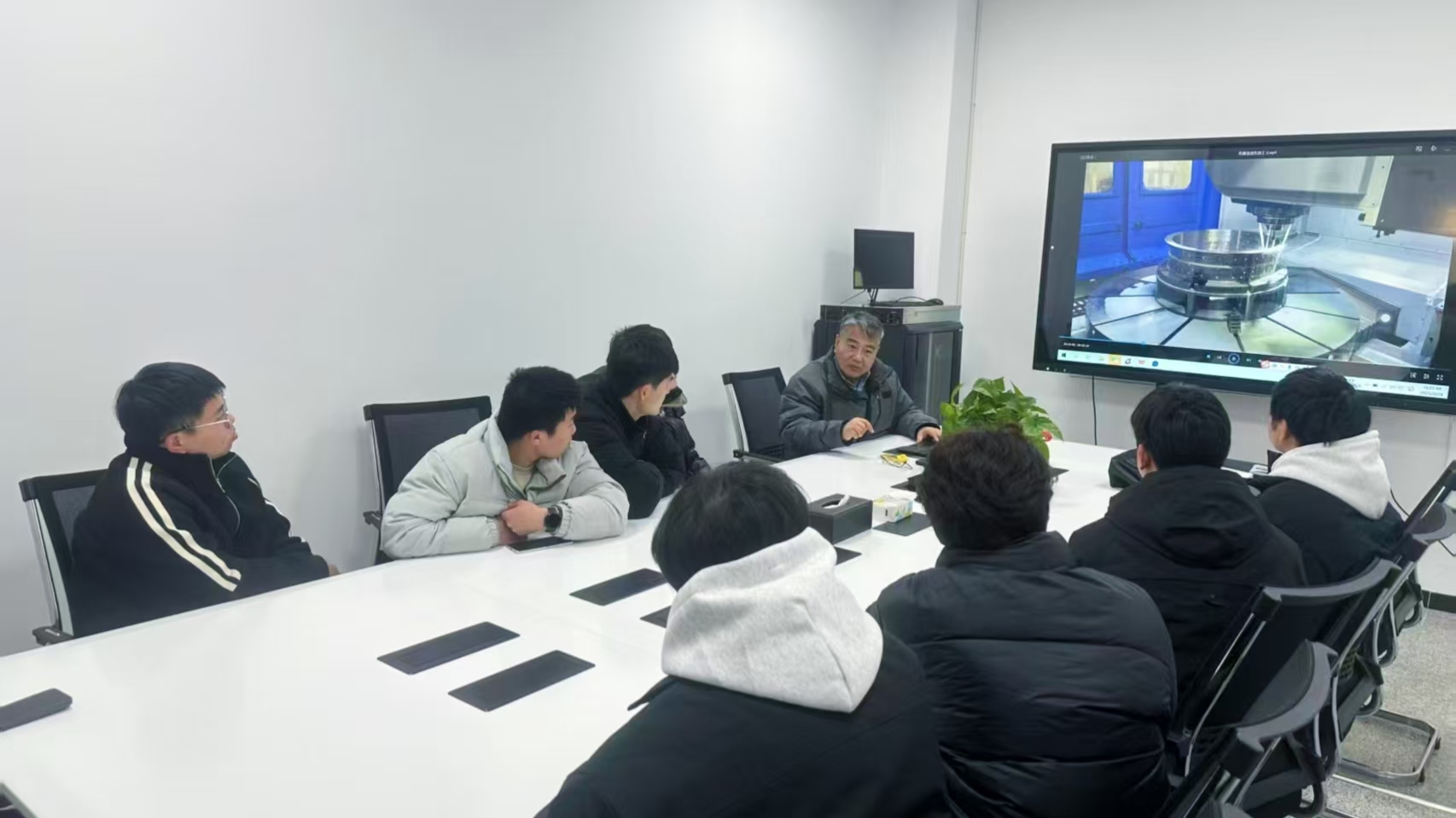 在參觀環(huán)節(jié),師生們被車間內(nèi)數(shù)控機(jī)床和加工中心的轟鳴聲和高效運(yùn)轉(zhuǎn)所吸引,親眼見(jiàn)證了企業(yè)在航空航天、汽車零部件及電子配件等領(lǐng)域的精密制造實(shí)力。夏向東詳細(xì)介紹了企業(yè)引進(jìn)先進(jìn)設(shè)備、嚴(yán)格遵循工藝流程并構(gòu)建完善質(zhì)量管理體系的情況,并強(qiáng)調(diào)高技能人才對(duì)企業(yè)持續(xù)創(chuàng)新的關(guān)鍵作用。學(xué)生們抓住機(jī)會(huì),圍繞設(shè)備操作、編程技巧和工藝控制等問(wèn)題,積極提問(wèn),并與現(xiàn)場(chǎng)工程師展開(kāi)熱烈的互動(dòng)交流,對(duì)專業(yè)理論與實(shí)際應(yīng)用之間的緊密聯(lián)系有了更深刻的理解。