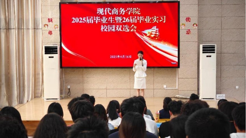 4月16日下午,安慶職業(yè)技術學院現(xiàn)代商務學院舉辦2025屆畢業(yè)生校園雙選會。學院黨總支書記金啟勝、招生就業(yè)處負責人及800余名師生參加活動。