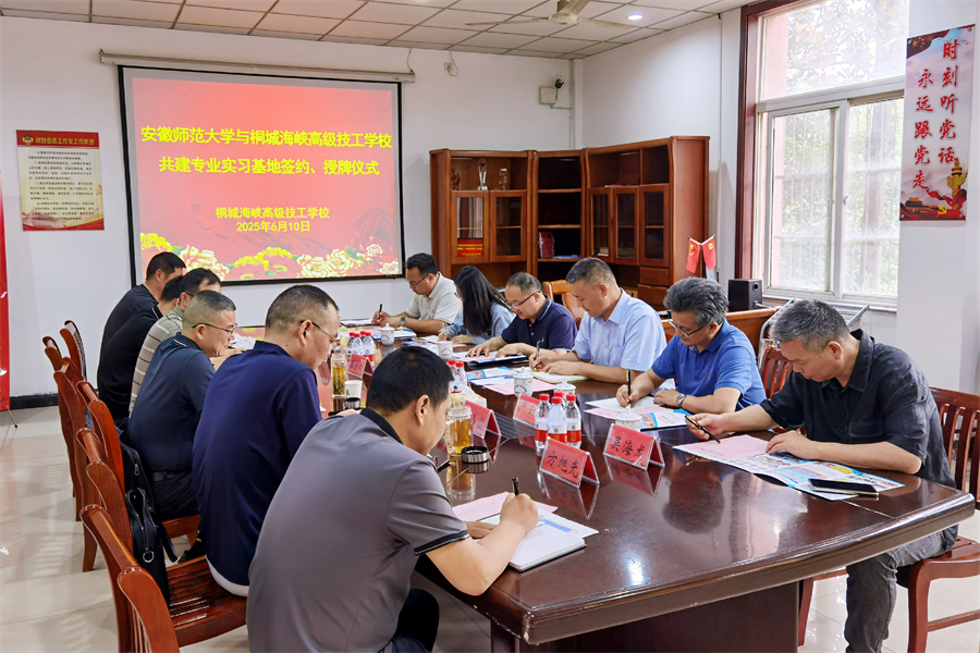 會上舉行了隆重的簽約授牌儀式,安師大生態(tài)與環(huán)境學(xué)院院長胡好遠與桐城海峽高級技工學(xué)校校長郭昌盛分別代表雙方簽署合作協(xié)議,并進行了現(xiàn)場授牌。