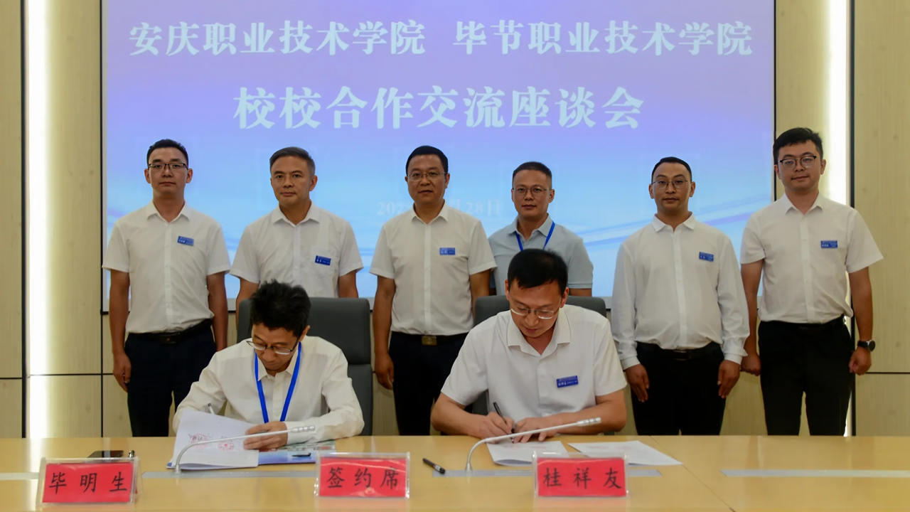 8月28日至29日,安慶職業(yè)技術(shù)學(xué)院校長畢明生應(yīng)邀赴畢節(jié)職業(yè)技術(shù)學(xué)院參加2025中國-東盟教育交流周“校旅結(jié)合·職業(yè)教育助力鄉(xiāng)村振興”活動,并與畢節(jié)職業(yè)技術(shù)學(xué)院簽署框架合作協(xié)議。