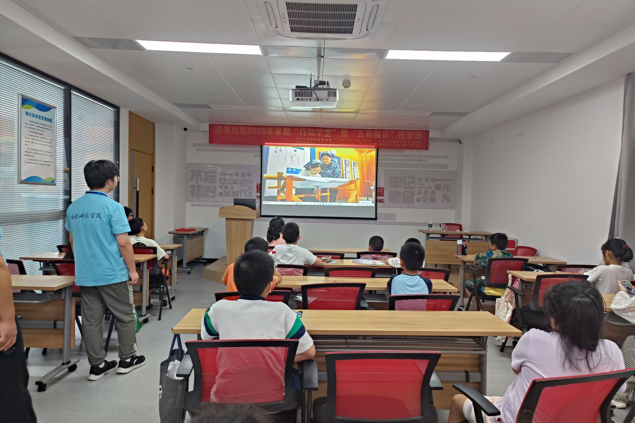 為幫助學(xué)員深入理解望江挑花的文化價(jià)值,活動(dòng)特別設(shè)置“非遺小講堂”環(huán)節(jié),播放何冬霞對(duì)國(guó)家非遺望江挑花的介紹視頻,帶領(lǐng)小朋友們?cè)朴伟矐c皖江中等專業(yè)學(xué)校國(guó)家非遺望江挑花保護(hù)與傳承基地。展覽館內(nèi)陳列的挑花作品琳瑯滿目,每一幅都蘊(yùn)含著深厚的文化底蘊(yùn)。而基地的迎賓廳,更是仿照當(dāng)年望江挑花進(jìn)入人民大會(huì)堂安徽廳的裝飾場(chǎng)景復(fù)制而成。望江作為“三孝之鄉(xiāng)”,迎賓廳內(nèi)還特別展示了以二十四孝為主題的挑花作品,傳遞著孝道文化的深刻內(nèi)涵。