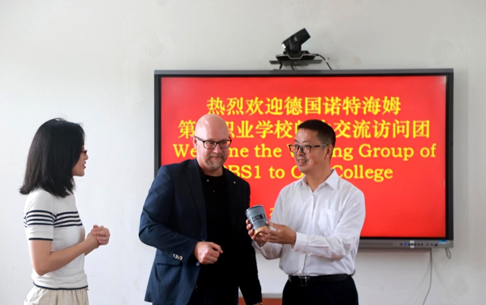 座談會上,李海軍校長對德國師生的到訪表示熱烈歡迎。他回顧了兩校自2009年締結友好關系以來,始終秉持開放包容、互學互鑒的精神,通過學術研討、師生互訪、技術交流等多種形式不斷深化合作,已成為中德職業(yè)教育領域交流合作的一個生動縮影。他強調(diào),在中國大力推進職業(yè)教育高質(zhì)量發(fā)展、深入實施“職教出?!睉?zhàn)略的背景下,該校高度重視國際化合作,期待雙方進一步拓展在專業(yè)共建、師資培養(yǎng)與學生聯(lián)合培養(yǎng)等方面的合作空間,共同為中德職教發(fā)展貢獻更多務實成果。德國BBS1副校長Tammen Sven在講話中對理工學校的熱情接待表示衷心感謝,同時介紹了德國諾特海姆第一職業(yè)學校的發(fā)展近況,并提出了深化兩校交流合作的積極展望。會后,雙方還代表兩?;ベ浟硕Y物。