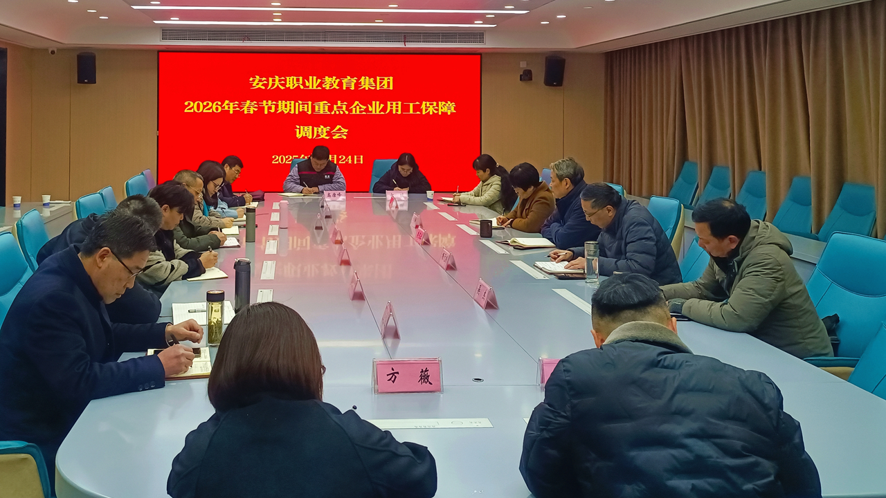 12月24日下午,安慶職教集團(tuán)在安慶職業(yè)技術(shù)學(xué)院召開春節(jié)期間園區(qū)重點(diǎn)企業(yè)用工保障調(diào)度會(huì)。安慶職教集團(tuán)副理事長、秘書長李克讓主持會(huì)議。安慶技師學(xué)院、安慶工業(yè)學(xué)校、安徽理工學(xué)校、安徽化工學(xué)校等集團(tuán)內(nèi)城區(qū)中職、技工院校主要負(fù)責(zé)人,安慶職業(yè)技術(shù)學(xué)院6個(gè)二級學(xué)院主要負(fù)責(zé)人參會(huì)。