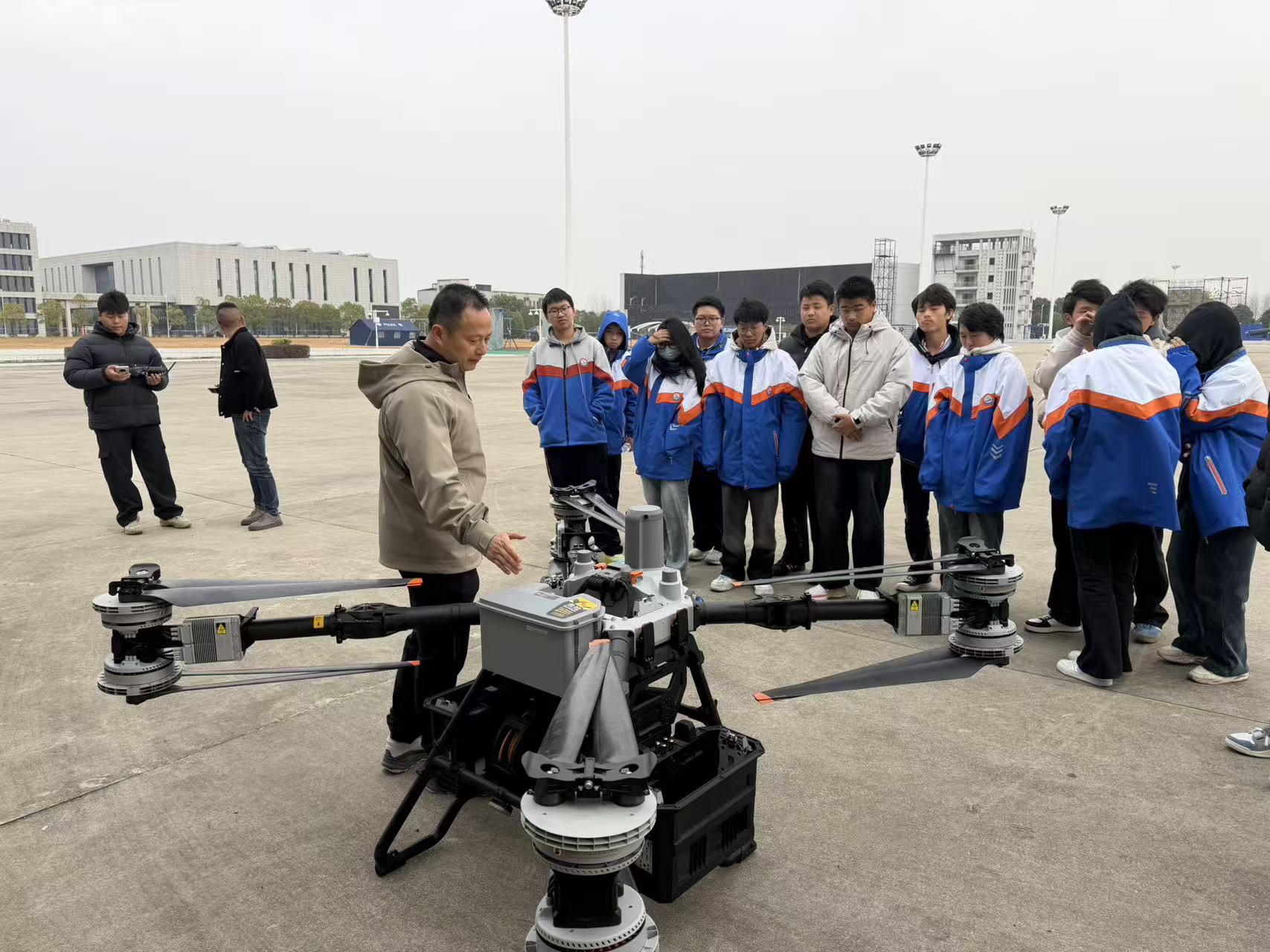 12月12日,太湖職業(yè)技術(shù)學(xué)校組織2025級(jí)無(wú)人機(jī)專業(yè)師生走進(jìn)大疆行業(yè)應(yīng)用、北斗智航公司,開展一場(chǎng)理論性與實(shí)操性的“無(wú)人機(jī)+行業(yè)應(yīng)用”實(shí)踐教學(xué)活動(dòng),沉浸式解鎖“無(wú)人機(jī)+”前沿科技教學(xué)。學(xué)校政教處主任方明華率隊(duì),無(wú)人機(jī)專業(yè)班主任萬(wàn)家兵、相關(guān)專業(yè)課教師、以及無(wú)人機(jī)專業(yè)班級(jí)學(xué)生30余名師生代表參加活動(dòng)。